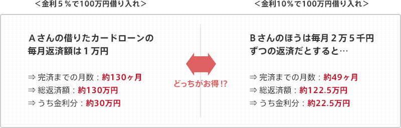 10%の金利で100万円借りたBさんは、どちらが先にローンを完済できるでしょうか?